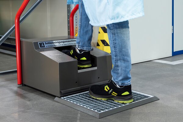 Solamat 90 to kompaktowe i wytrzymałe urządzenie przemysłowe zaprojektowane do skutecznego, suchego czyszczenia podeszw obuwia roboczego. Dzięki solidnej konstrukcji i precyzyjnie dobranym elementom czyszczącym, maszyna radzi sobie nawet z mocno zabrudzonymi podeszwami, zapewniając wysoki poziom higieny i estetyki wejścia do stref produkcyjnych.