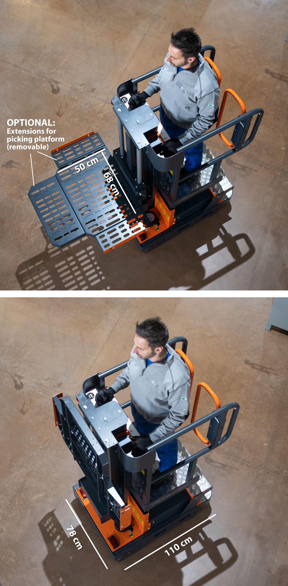 wysokość robocza do 6 m – łatwy dostęp do wyższych poziomów regałów