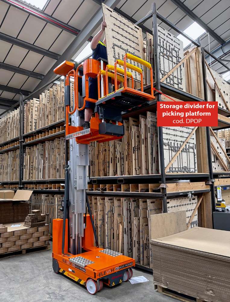 Elevah 8 Move Picking to samojezdny wózek kompletacyjny zaprojektowany z myślą o szybkiej, ergonomicznej i bezpiecznej pracy przy pobieraniu towarów z półek nawet na 7,78 m wysokości. Urządzenie sprawdza się w magazynach, halach logistycznych, sklepach wielkopowierzchniowych i centrach dystrybucyjnych.