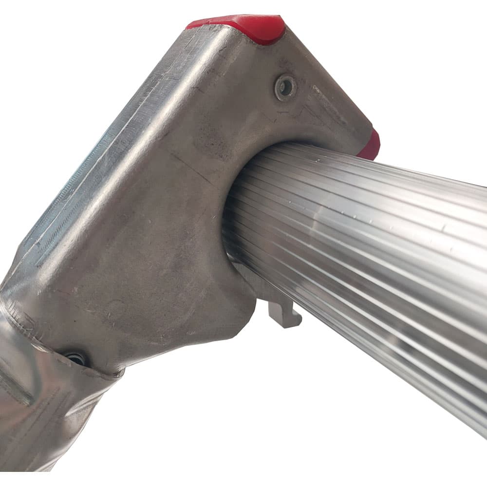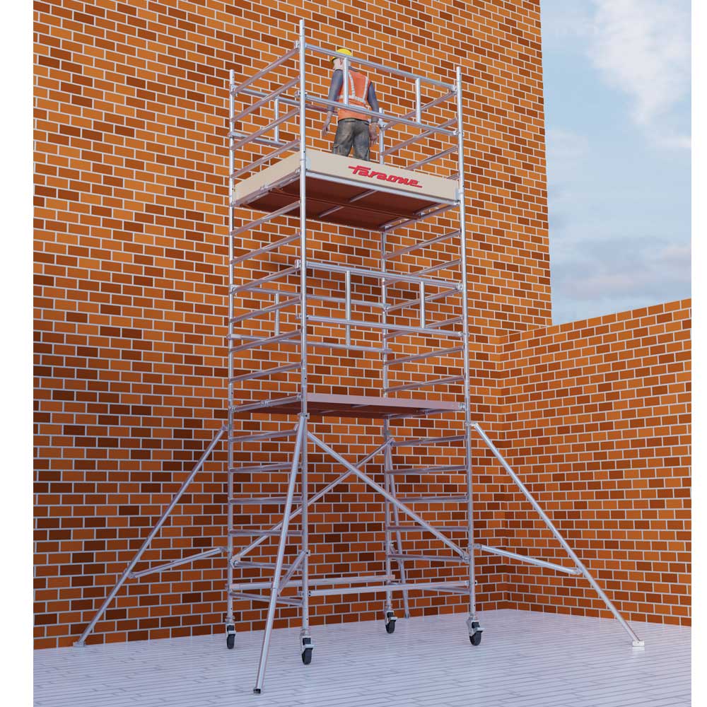 Solidna, a jednocześnie lekka konstrukcja aluminiowa pozwala na szybki montaż i demontaż rusztowania. Kółka jezdne z hamulcem umożliwiają łatwe przemieszczanie konstrukcji oraz jej stabilne ustawienie w miejscu pracy. Zastosowanie stabilizatorów bocznych znacząco zwiększa stateczność rusztowania, szczególnie przy dużych wysokościach roboczych.