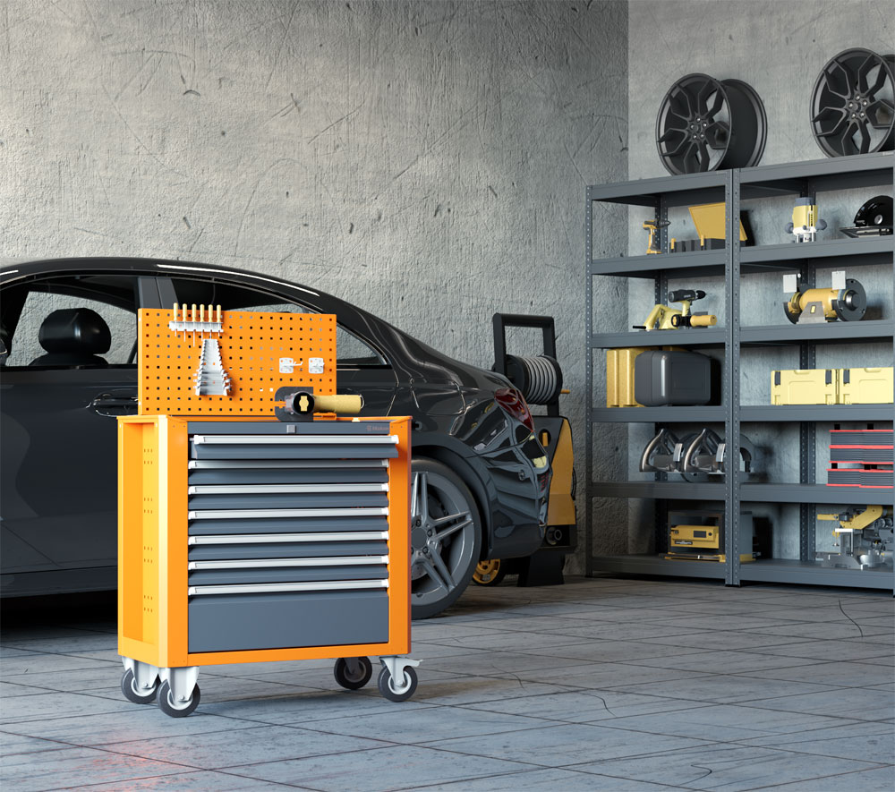 Mobilny wózek narzędziowy stanowi wygodne uzupełnienie stanowiska warsztatowego. Dzięki solidnej konstrukcji stalowej oraz przemyślanemu systemowi zabezpieczeń gwarantuje stabilność i bezpieczeństwo użytkowania, nawet przy pełnym obciążeniu.