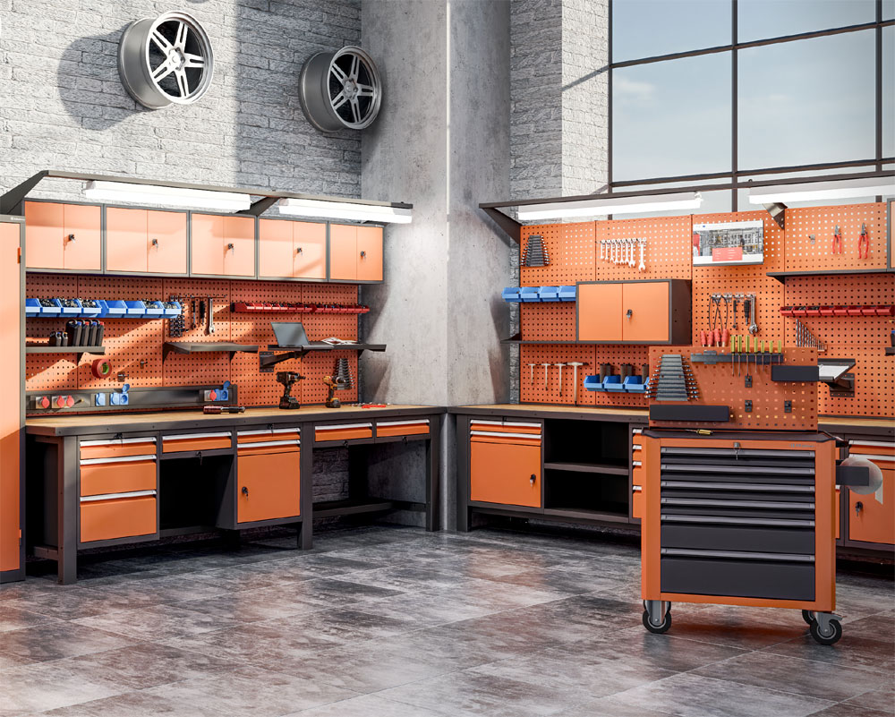 Szuflady pracują płynnie i zapewniają łatwy dostęp do narzędzi, a zastosowany system blokady uniemożliwia jednoczesne otwarcie kilku z nich. Blat z powierzchnią antypoślizgową oraz zabezpieczone krawędzie zwiększają komfort codziennej pracy. To rozwiązanie dla profesjonalistów, którzy oczekują trwałości i ergonomii.