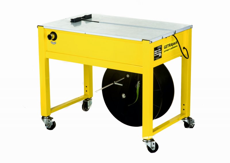 Półautomatyczna wiązarka taśmowa GETRApack to solidne i wydajne urządzenie przeznaczone do szybkiego oraz wygodnego bandowania kartonów, paczek i innych ładunków w magazynach, centrach logistycznych oraz zakładach produkcyjnych.