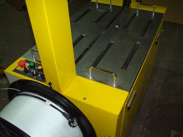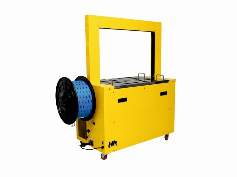 Stabilna konstrukcja stalowa, solidny stół roboczy oraz mobilna podstawa na kółkach gwarantują bezpieczną i komfortową eksploatację. Intuicyjny panel sterowania umożliwia łatwą regulację parametrów pracy, w tym siły naciągu taśmy, dopasowując urządzenie do różnych gabarytów i wag pakowanych produktów.
