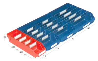 Wykonane z polipropylenu. Odporne na uderzenia, większość chemikaliów oraz temperaturę w zakresie od -5 do +60 st.C. Dostępne w kolorze: niebieski (RAL-5017). Przegrody wykonane są z przezroczystego polistyrenu. Ceny obejmują komplet czyli pojemnik wraz z przegrodami.