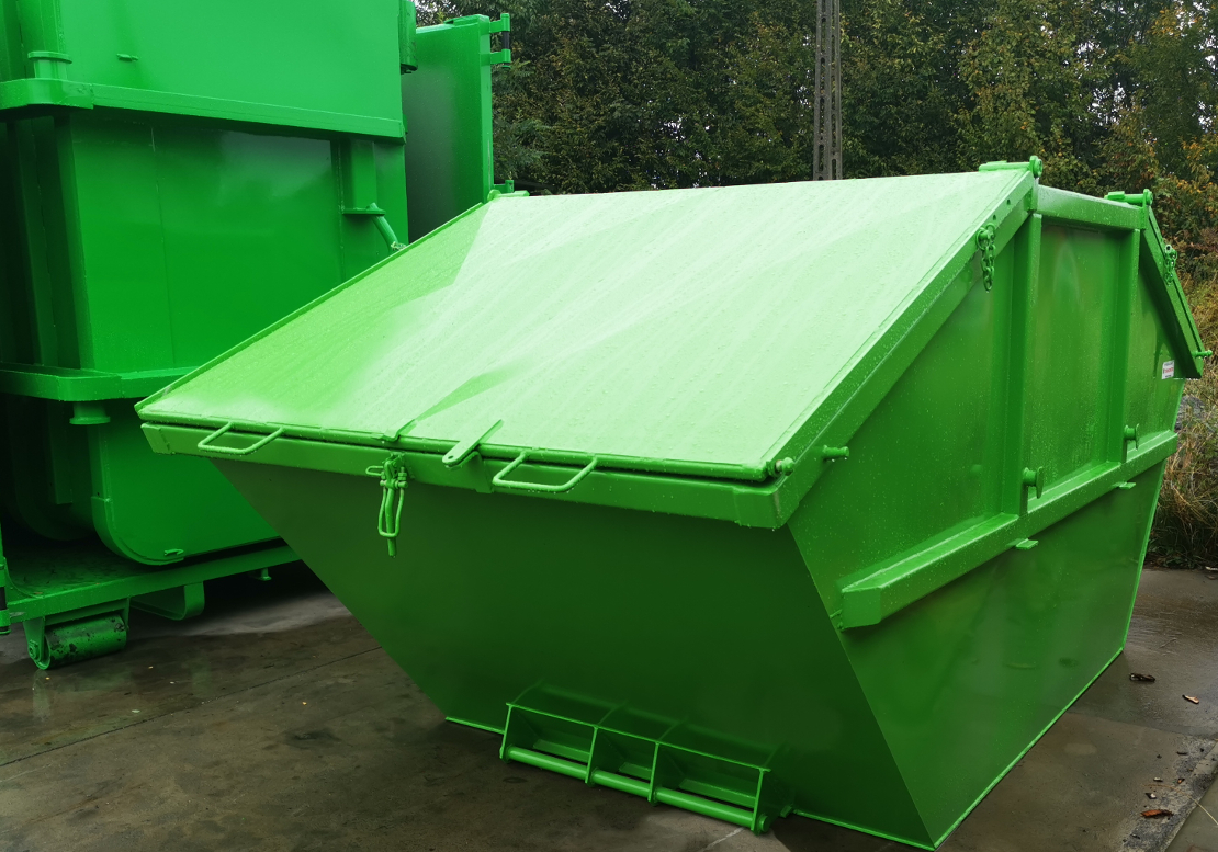 Kontenery przeznaczone są do zbiórki i transportu odpadów. kontener posiada dwie klapy unoszone na sprężynach płaskich z odpowiednim naciągiem. Zabezpieczenie antykorozyjne stanowi dwukrotne malowanie zewnątrzne a wewnątrz farbą podkładową. Zewnętrzne powierzchnie są malowane emalią AGROHEL. Wnętrze kontenera na życzenie klienta dodatkowo zabezpieczone środkiem antykorozyjnym GUMOASFALT /odpowiednik Biteksu/.