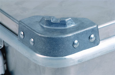 Gumowa uszczelka zabezpiecza przed dostępem kurzu i wilgoci. Zatrzaskowe zamknięcie przystosowane jest do założenia plomby lub kłódki. Wszystkie pojemni mają udźwig 50 kg ze względu na wytrzymałość uchwytów.