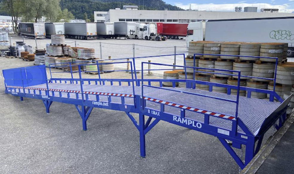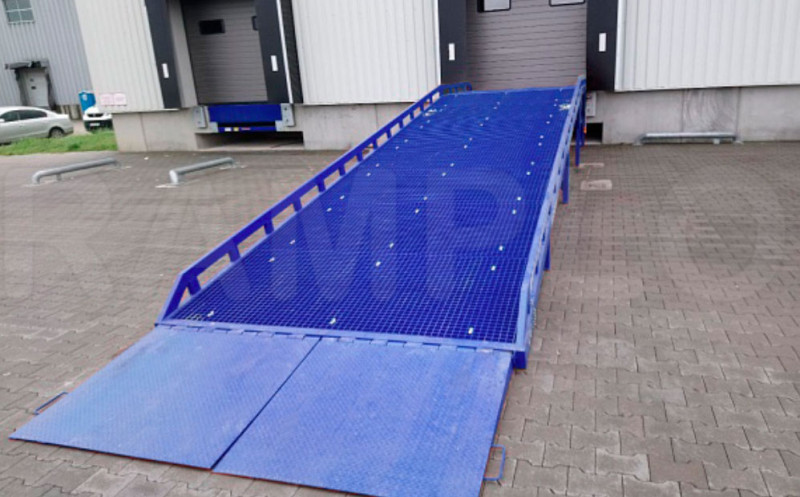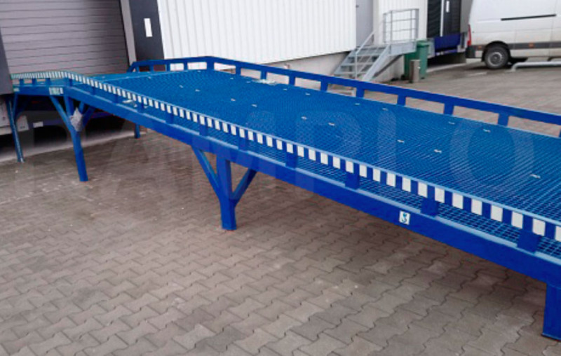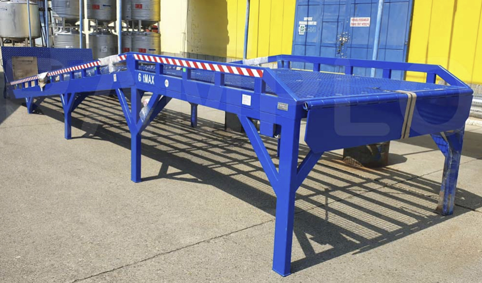 Stacjonarne rampy najazdowe umożliwiają wjazd lub wyjazd samochodów lub wózków widłowych do hal magazynowych, których posadzka jest na wysokości standardowych ram, czyli około 110-120 cm. Dodatkowa platforma na wysokości rampy umożliwia boczny załadunek samochodów ciężarowych. Jako opcje można zamówić schodki na platformę. Całość konstrukcji nośnej wykonana jest z elementów stalowych najwyższej jakości. Bieżnia najazdowa pokryta spawaną strukturą sieciową. Rampy wykonywane są w różnych wersjach pokrycia najazdów. Gwarancja na rampy wynosi 18 miesięcy. Istnieje możliwość wykonania rampy o innych wymiarach i parametrach.