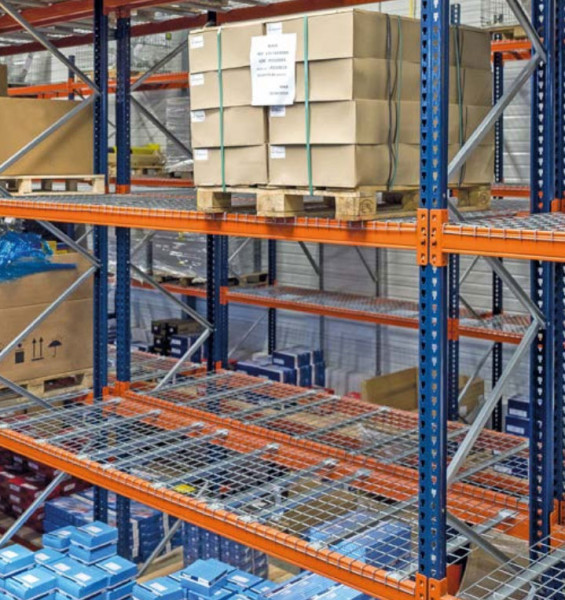 Wypełnienie poziomów składowania w regałach paletowych półkami siatkowymi ocynkowanymi, umożliwia składowanie towarów w mniejszych opakowaniach. Nie przeszkadza to także w składowaniu palet. Siatki w zależności od wymaganego udźwigu posiadają 3 lub 4 wzmocnienia typu „OMEGA”. Wielkość i udźwig siatek dobiera się wg potrzeb. Podana ładowność obowiązuje w przypadku towaru równomiernie rozłożonego na palecie opierającej się na obu trawersach. Półki spełniają wymagania systemów przeciwpożarowych.