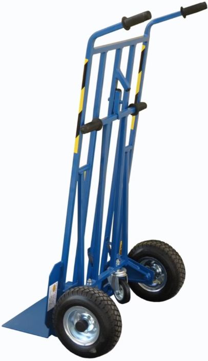Wózek umożliwia pracę w trzech pozycjach: jako wózek dwukołowy, jako wózek dwukołowy z podporą (zdjęcie) lub jako wózek platformowy czterokołowy. Koła pneumatyczne doskonale nadają się do jazdy zarówno po utwardzonych nawierzchniach jak i grząskim, nierównym terenie. Duża średnica kół ułatwia podjazdy na krawężniki i stopnie schodów.