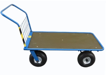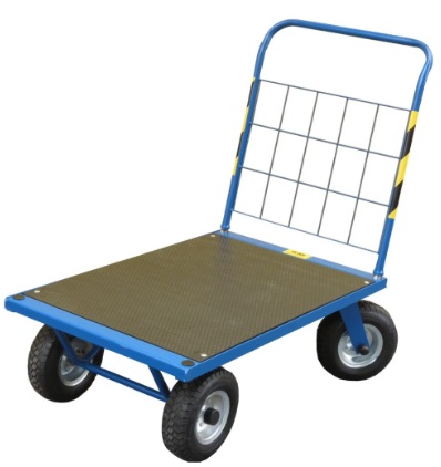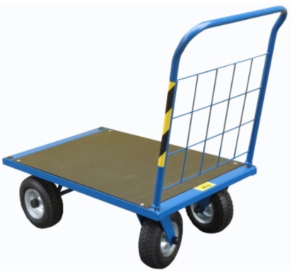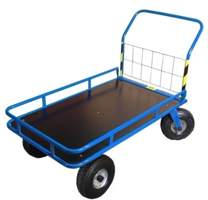 Wózki transportowe platformowe na kołach pneumatycznych pozwalają na wygodny transport towarów po nierównych nawierzchniach. Wszystkie elementy stalowe malowane są lakierami proszkowymi. Podłoga wykonana jest z wodoodpornej i antypoślizgowej sklejki impregnowanej. Koła polskie – łożyska wałeczkowe, czarna opona.jki impregnowanej. Koła polskie – łożyska wałeczkowe, czarna opona.