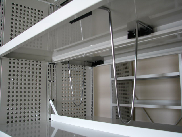 Natomiast podwieszane rozdzielacze teczek wykonane są z chromowanego drutu zakończonego specjalnymi zaczepami podtrzymującymi je pod półkami. Można je wygodnie przesuwać i dociskać dostawianą dokumentację do już istniejącej utrzymując porządek.